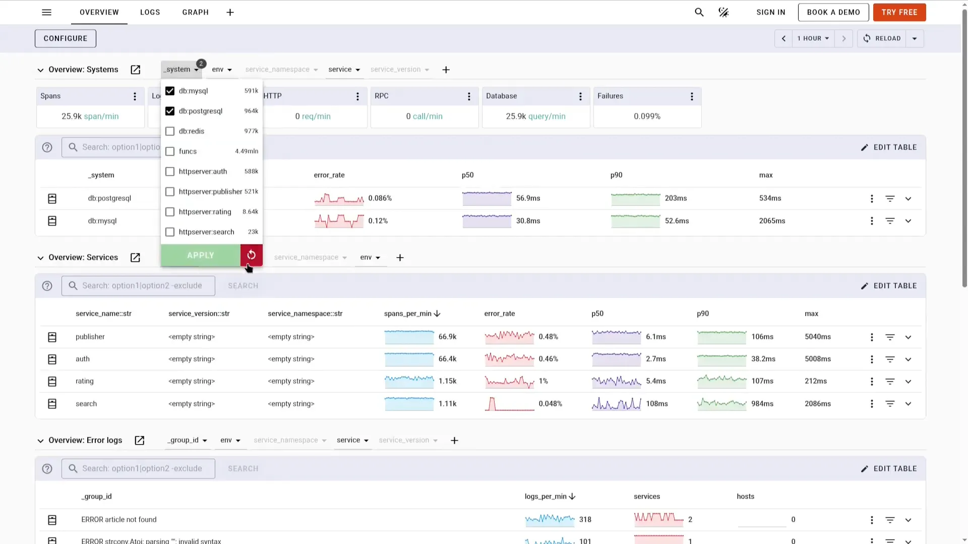 It offers pre-built dashboards for common monitors and provides a SQL-based query interface. Uptrace aims to provide a cost-effective alternative to other solutions by leveraging efficiency of columnar storage.