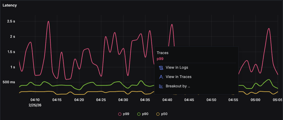 - Seamless flow between metrics, traces, and logs