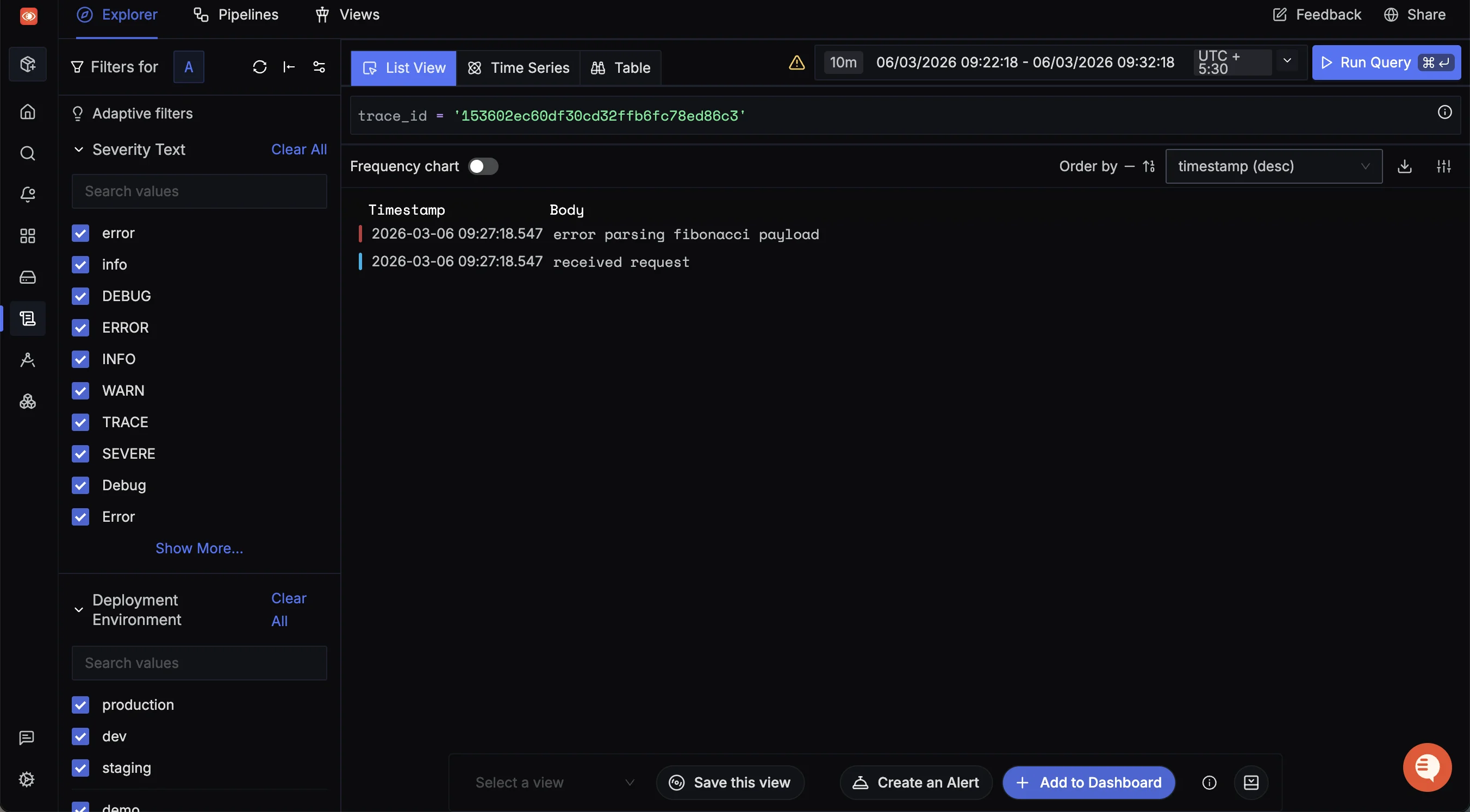 You can open the entries in the Logs Explorer view if you wish to inspect them in detail.