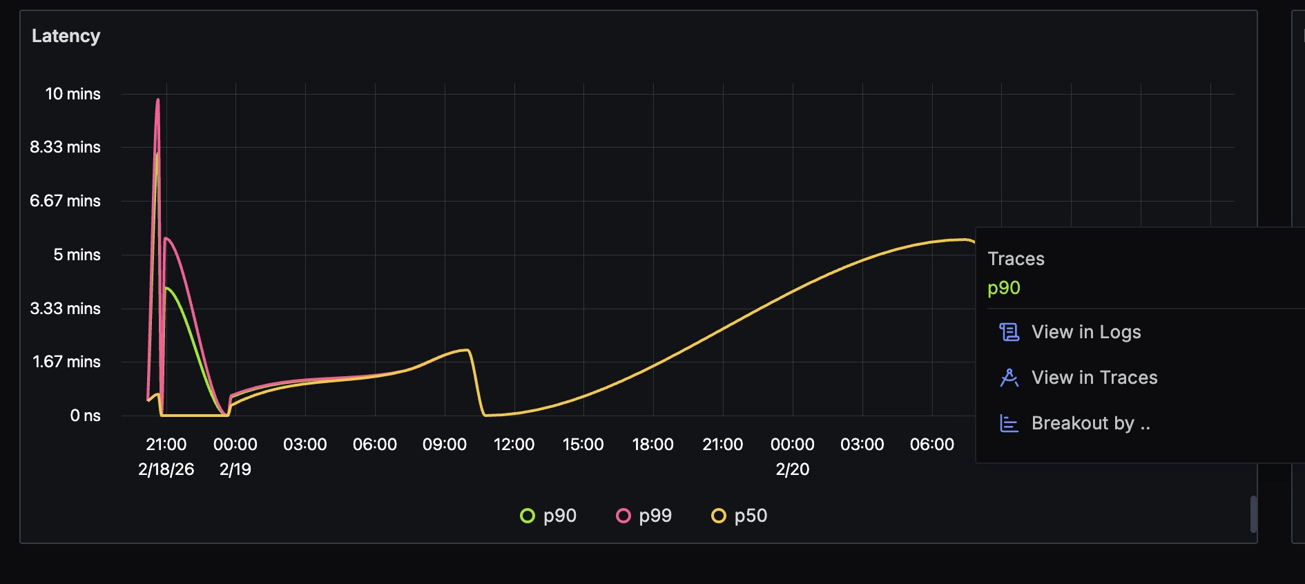 - Aggregation views (metrics or trace aggregations)