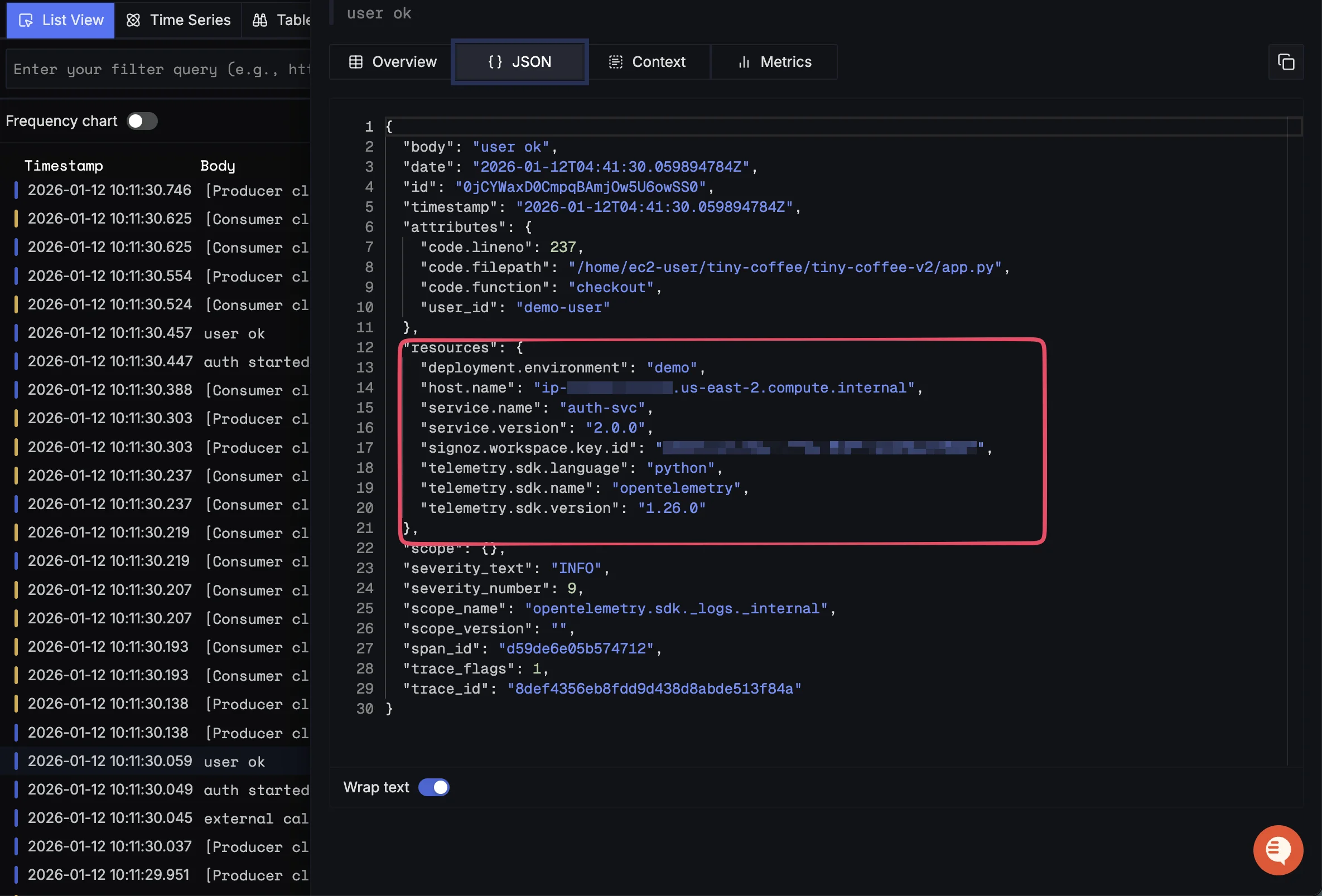 Attributes share the same data model across telemetry signals (traces, metrics, and logs), which ensures correlation between telemetry ingested from a single source. So if you notice high memory usage for a host.name, you can filter all logs and traces belonging to that host to diagnose if a component is failing.