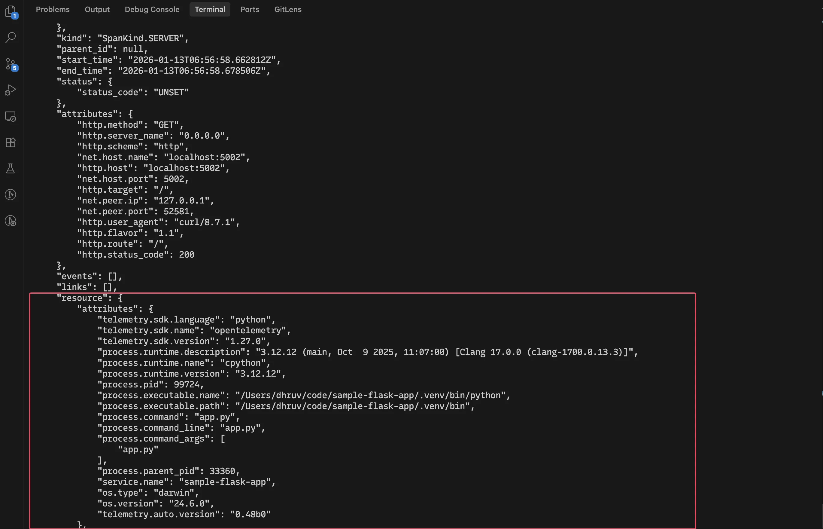 Let’s use the Python SDK as an example to understand how we can configure resource attributes programmatically. We’ll show the tracing configuration, but the same Resource instance can be re-used for logs and metrics.
