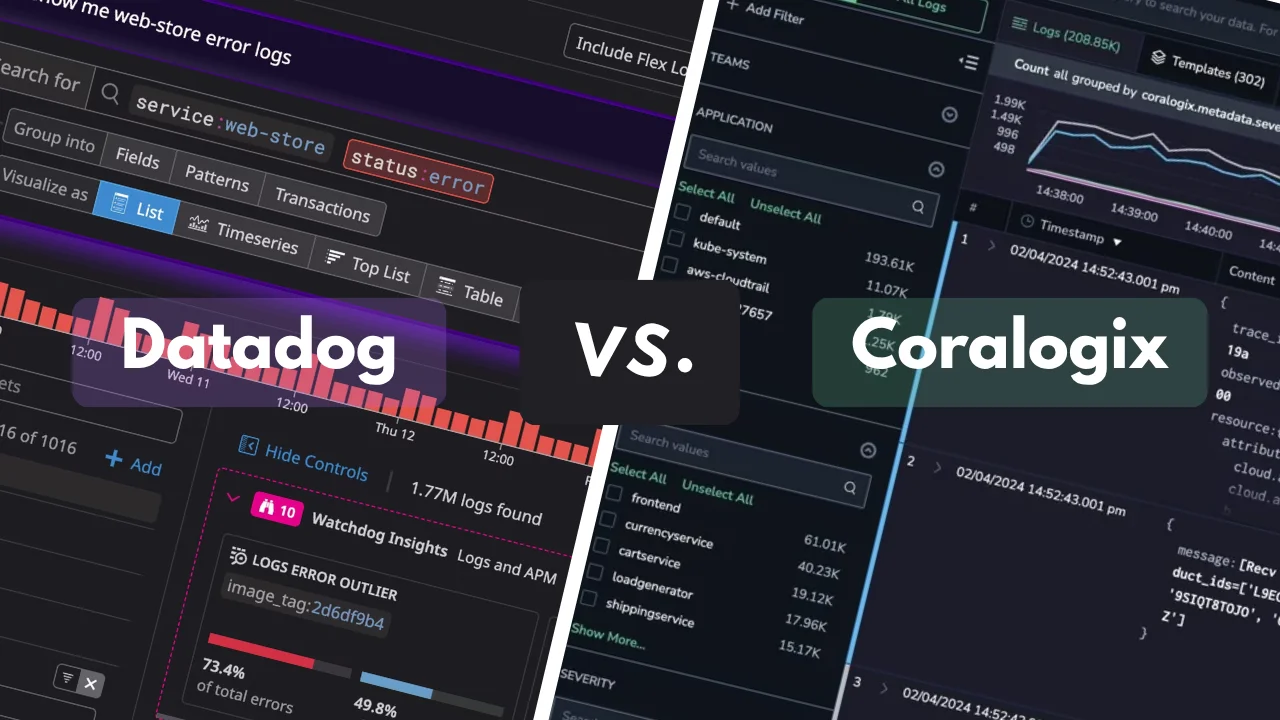 - Logs: Datadog's log management is mature and integrates well with its other products. Coralogix's logging is its core strength, offering fast search and cost-effective retention.