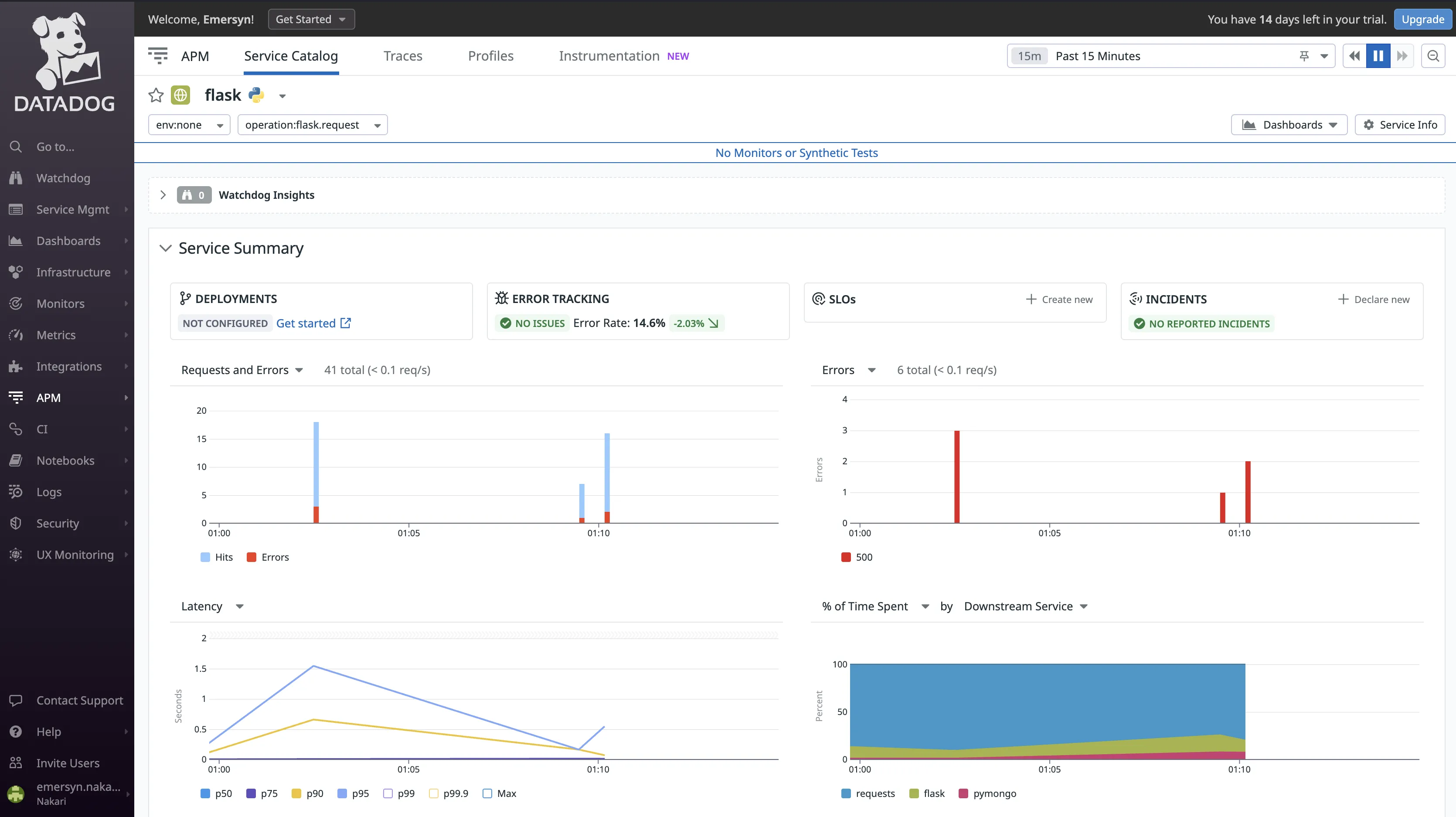 I instrumented a sample Python application and configured it to send data to both Datadog and Splunk for Application Performance Monitoring (APM). The setup process with Datadog was straightforward.