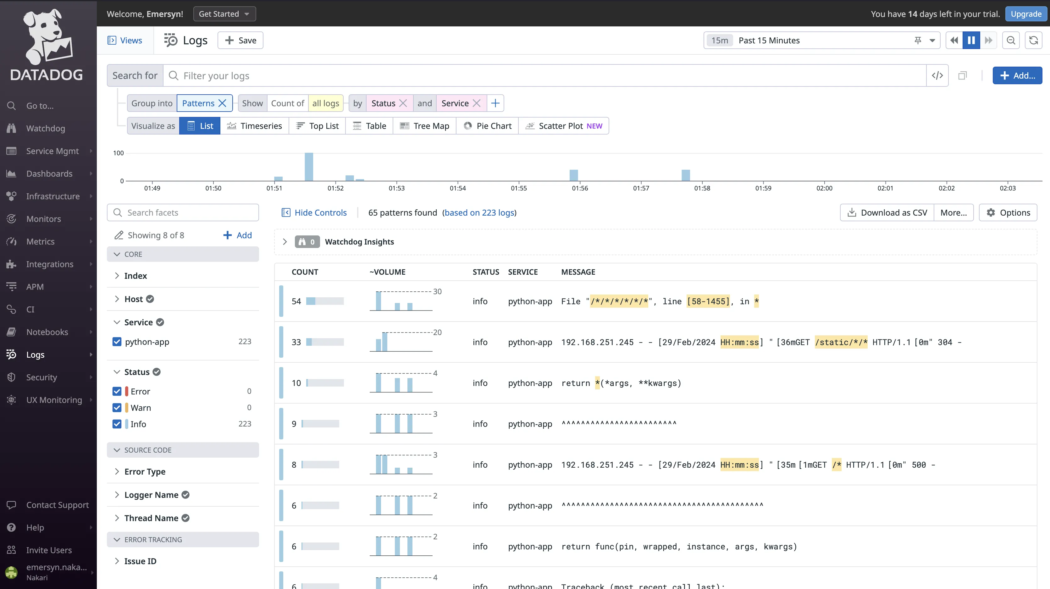 Some other features include error tracking across logs and traces, pattern analysis for real-time log grouping, and customizable log collection setups.