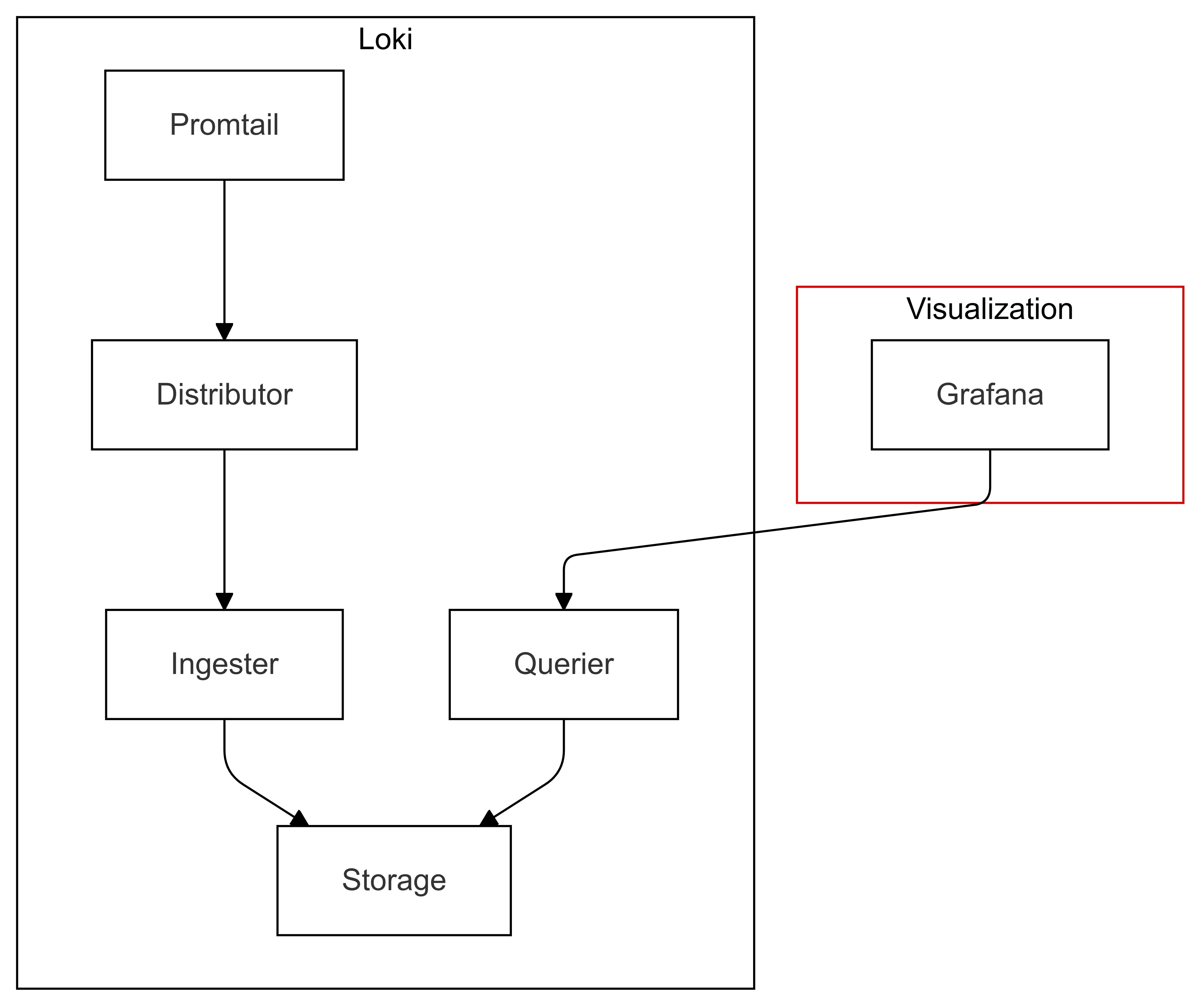 - Grafana: Provides visualization and querying capabilities for the log data stored in Loki.