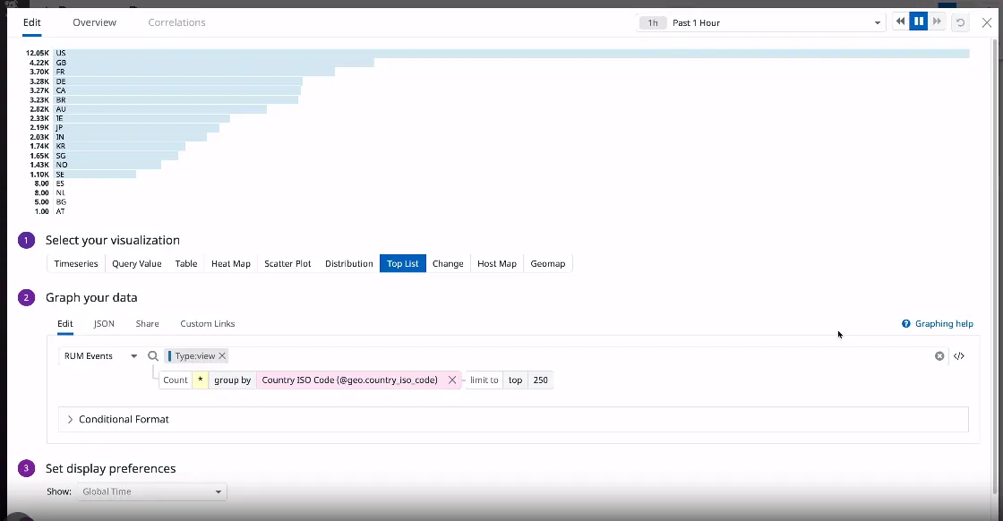 In fact, you can create custom dashboards with the API, build new views, use formulas and functions to best represent your data. Use Datadog’s geomap graphs, heatmaps, stacked graphs, or toplists to graph any data or compare metrics over months, and share with teammates and relevant stakeholders for easier overview.