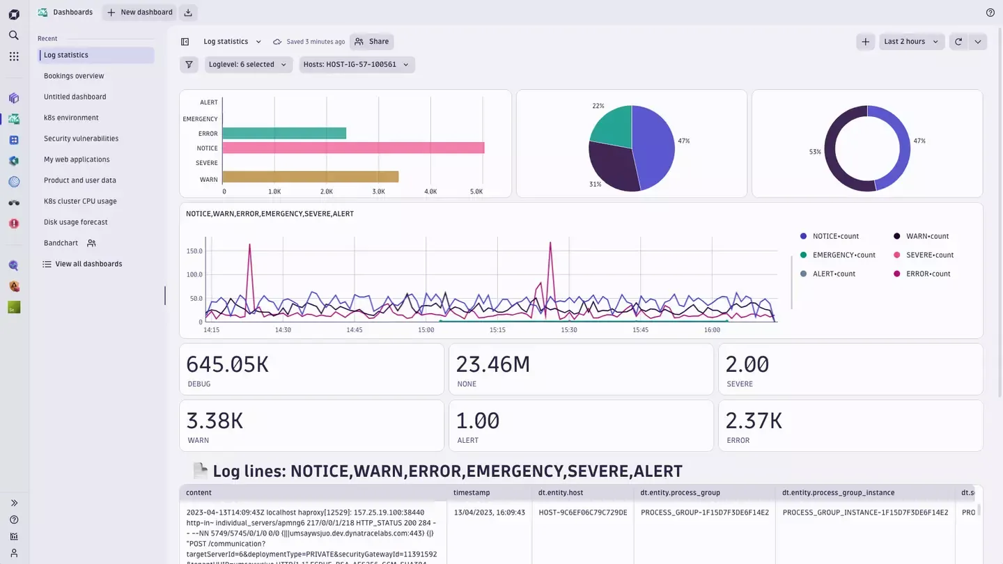 As a Kibana alternative, it allows you to create dashboards faster with predefined data and code snippets. You can also explore custom dashboards in Dynatrace Hub. You can even query and visualize data stored using Dynatrace Query Language (DQL) or write code to fetch external data. Dynatrace allows seamless integration to collaboration tools like Slack or Teams, reporting tools for streamlining incident management processes.