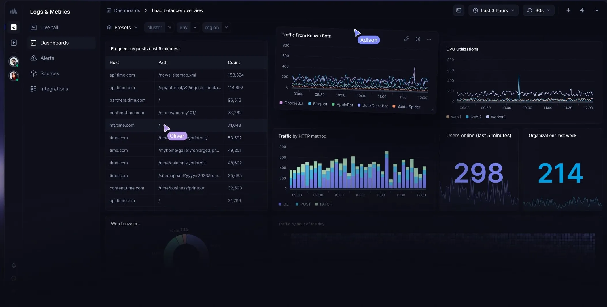 BetterStack WebsiteLogtail(now known as BetterStack) is an observability tool with a log aggregation feature that collect logs across various stacks with SQL-compatible structured logging in real time. With Logtail you can examine, organize, and store logs in a structured format ,search them and create custom reports using SQL. You can then save the reports as a dashboard, giving you and your team an overview of your entire stack.