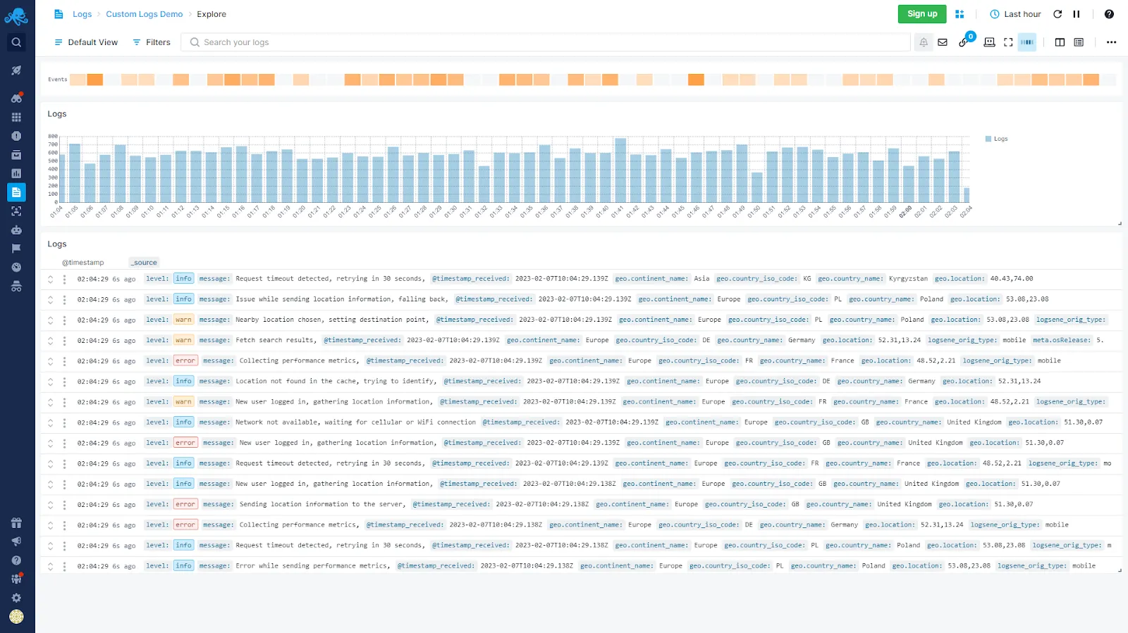 SigNoz is a full-stack open-source observability tool that provides log collection and analytics. SigNoz uses a columnar database ClickHouse to store logs, which is very efficient at ingesting and storing logs data. ClickHouse is designed for faster analytics with advanced querying. It makes SigNoz 2.5x faster than Elasticsearch while consuming 50% less resources.