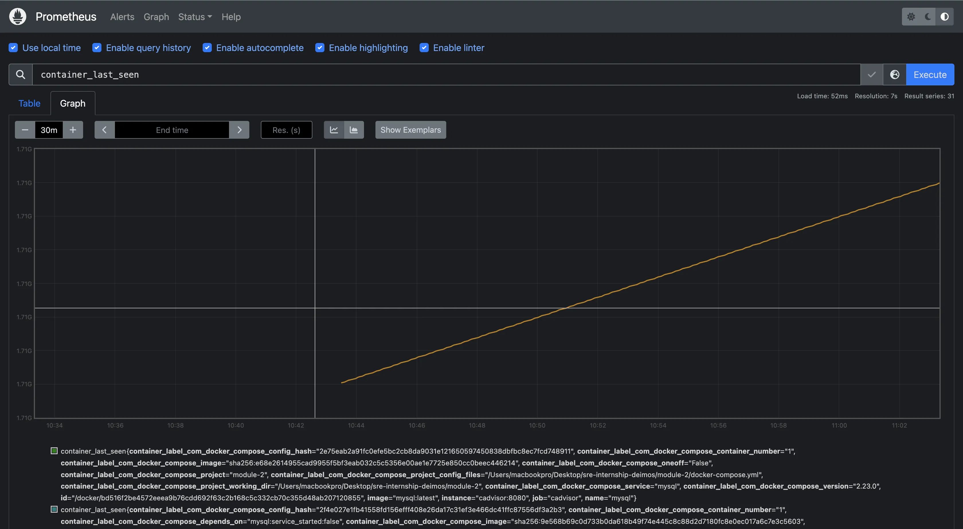 Prometheus provides several deployment alternatives, such as utilizing Docker, installing from source, using configuration management systems like Ansible, using pre-compiled binaries on multiple operating systems (Darwin, Linux, Windows, etc.), and using Homebrew, the macOS package manager. I utilized Docker to set up Prometheus on my machine.