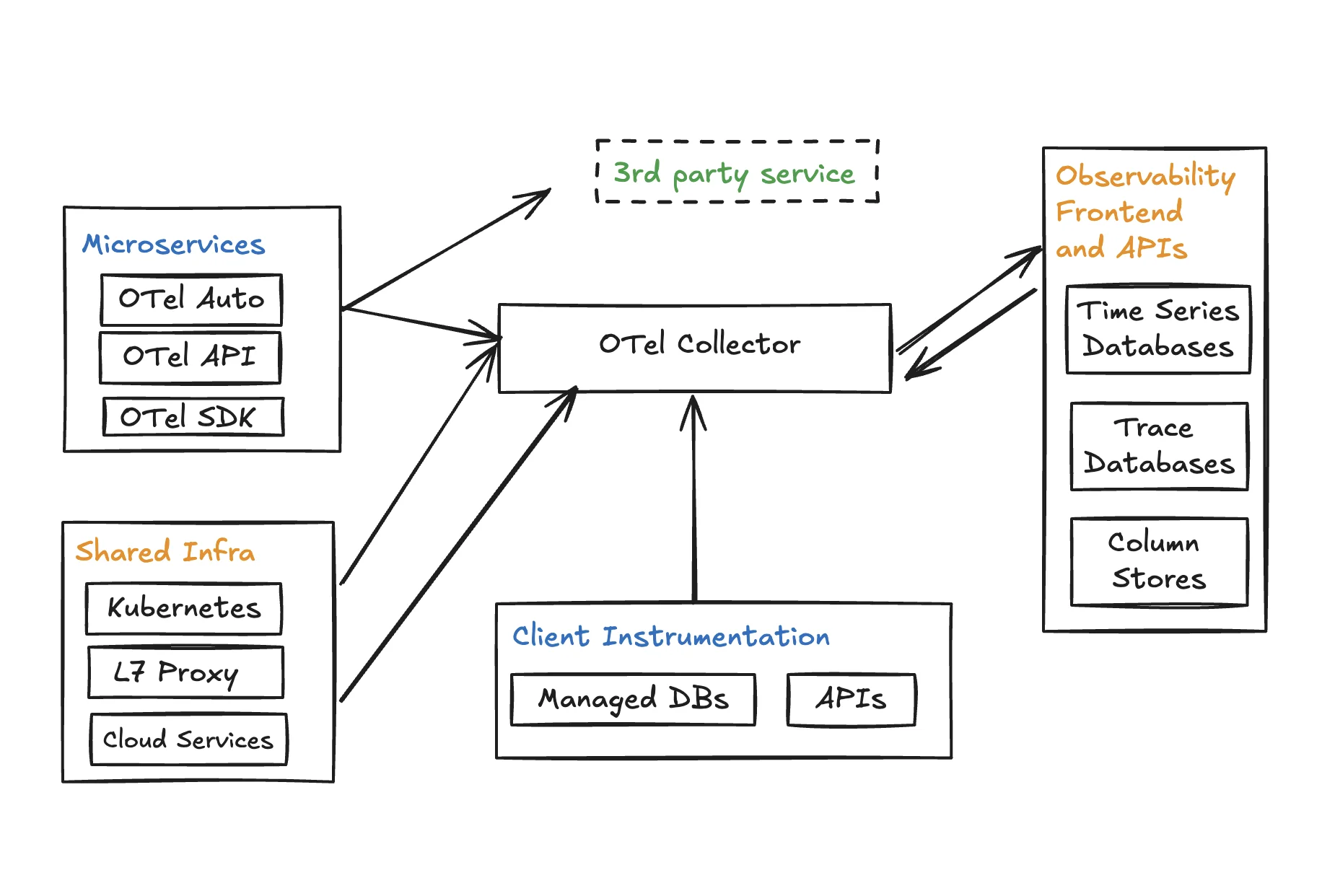 While OpenTelemetry and Telegraf serve different primary purposes, they can work together in a complementary fashion: