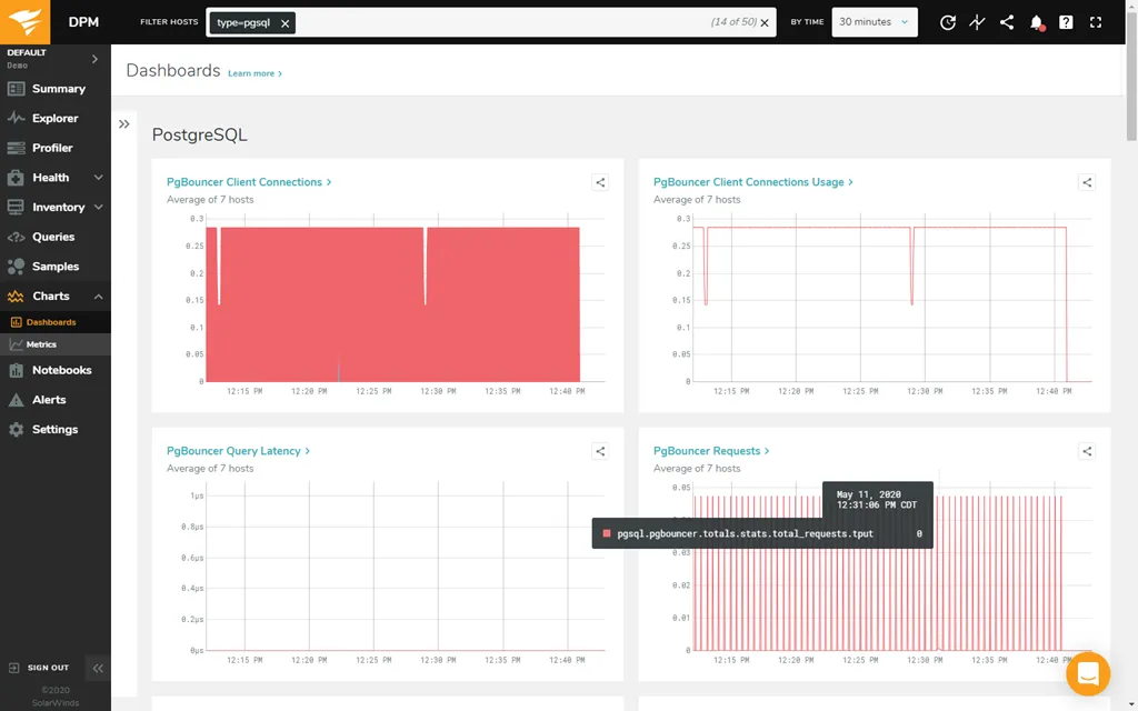SolarWinds DPM is a SaaS-based platform designed to monitor various databases' performance, including PostgreSQL, MongoDB, Microsoft SQL, and more. It offers a Profiler feature that provides detailed information about the most time-consuming and frequently executed queries within a PostgreSQL database. This allows for organizing and managing database queries.