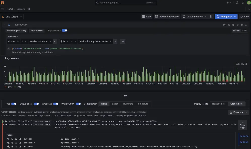 Loki allows you to store and query logs from all your applications and infrastructure, without worrying about log volumes, costs, or storage limits.