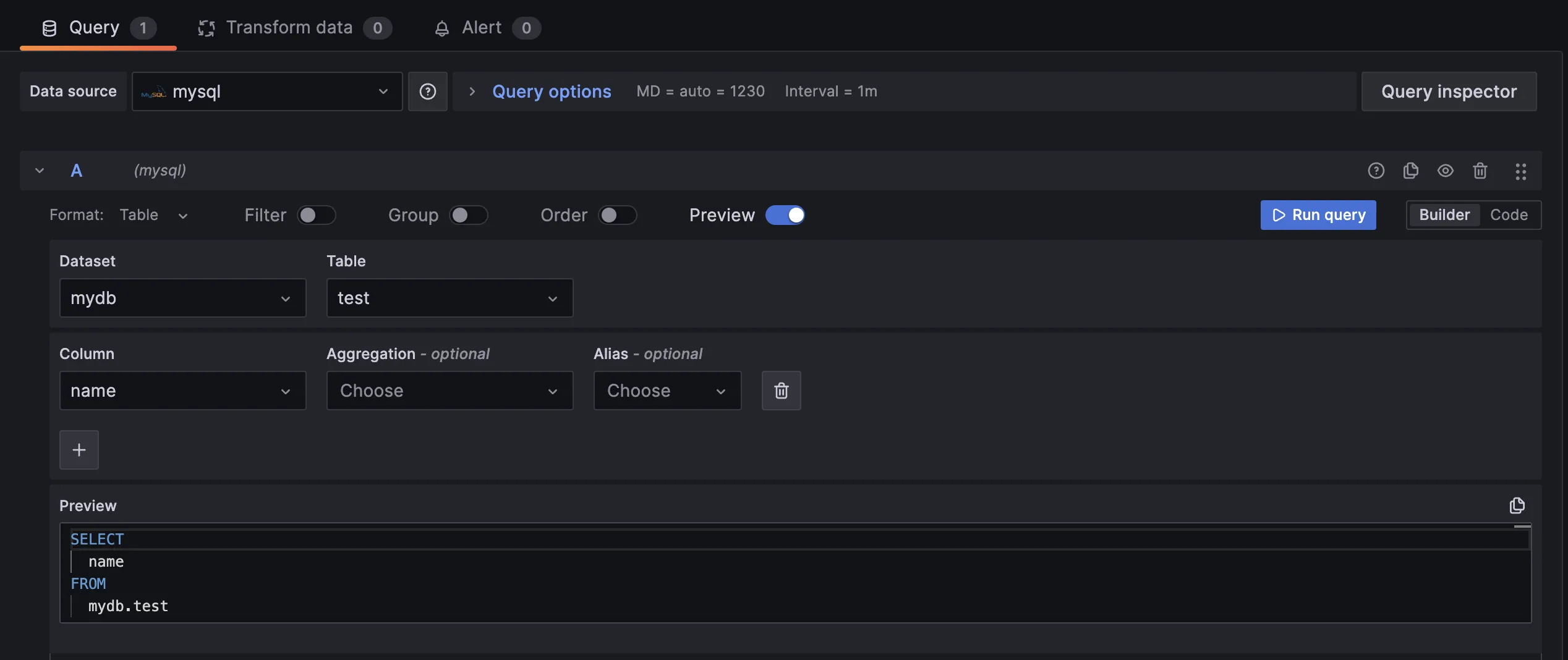 Similarly, if MySQL is configured as the direct data source in Grafana, the queries executed will be SQL queries, which are native to the MySQL database system.