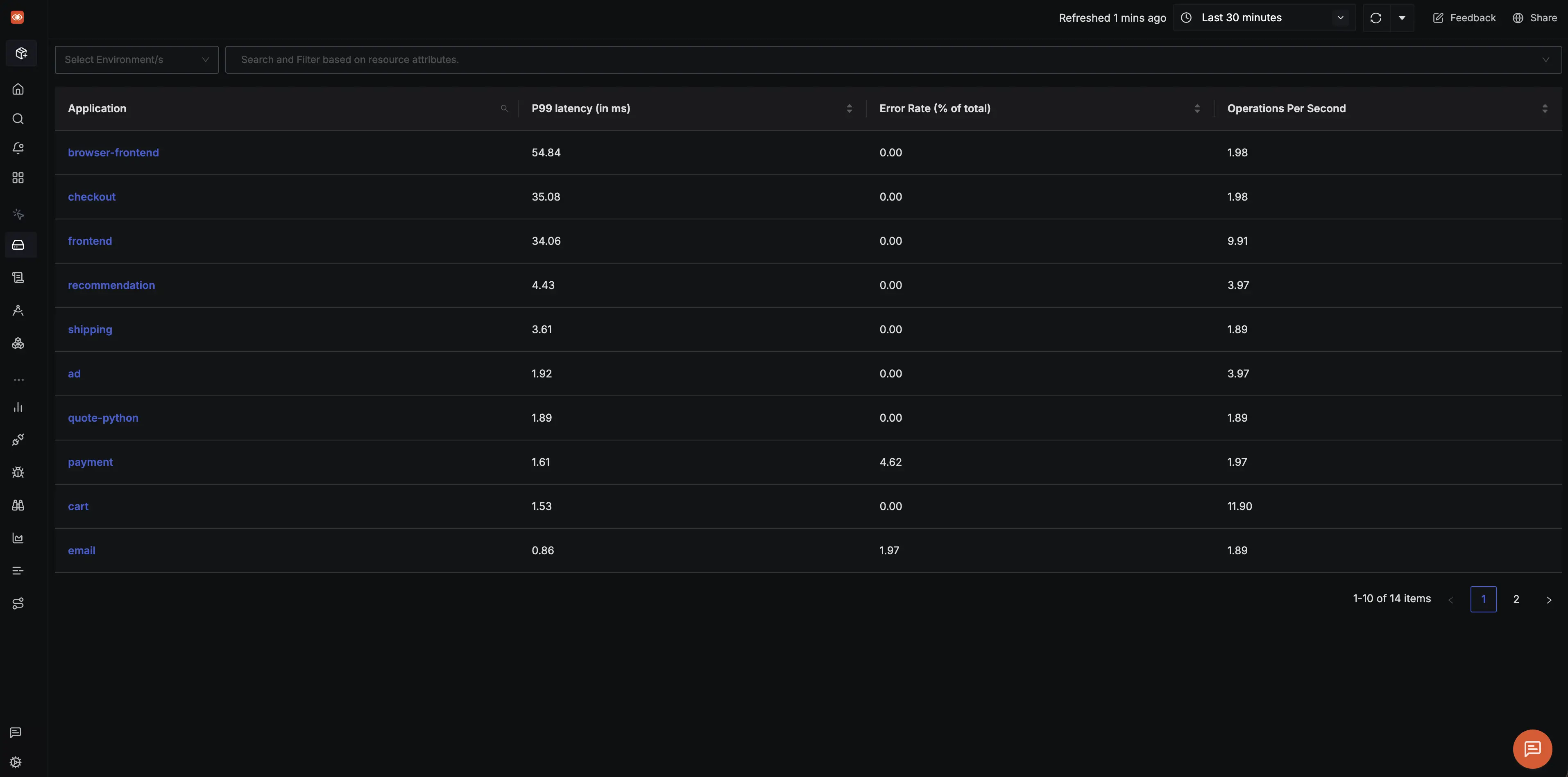 - Wait 2-3 minutes after starting the demo app (OpenTelemetry buffers data before sending)
