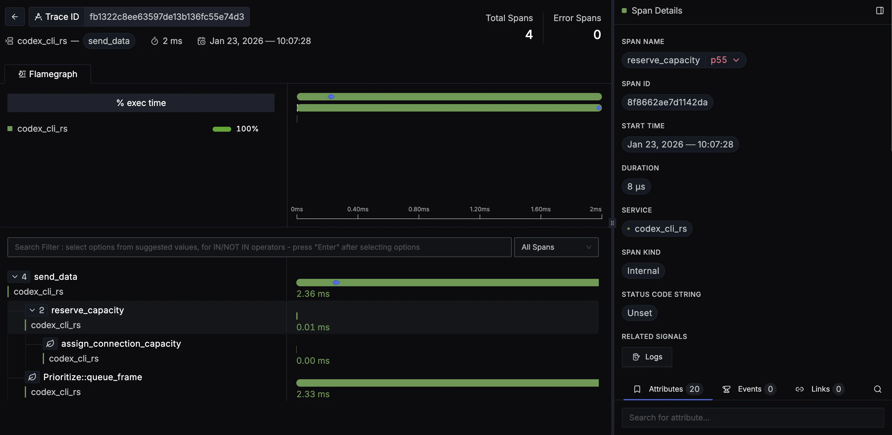 Your Codex usage should now automatically emit traces and logs to SigNoz.