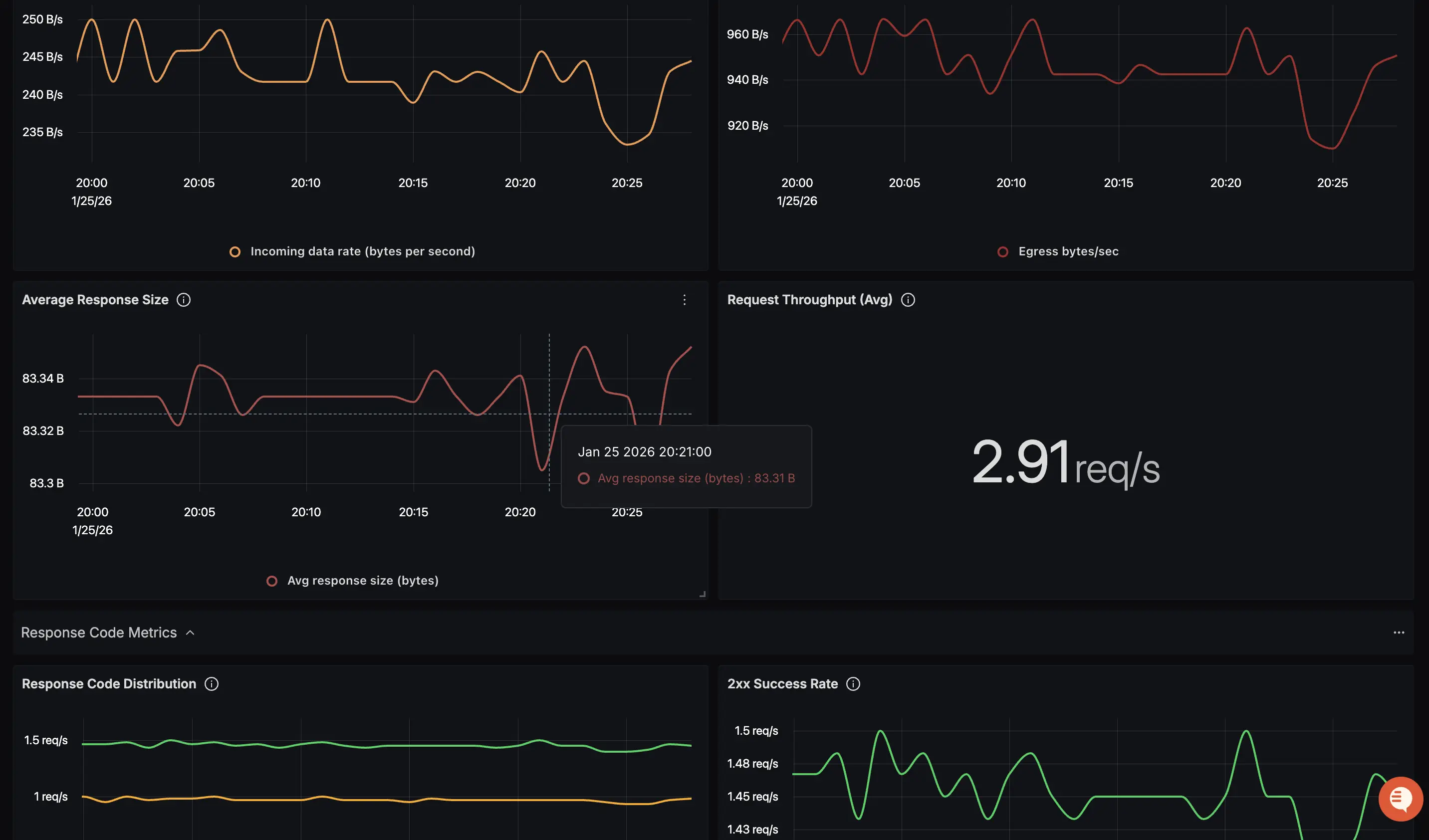 - Error Rate by Class: Breakdown of 4xx vs 5xx errors