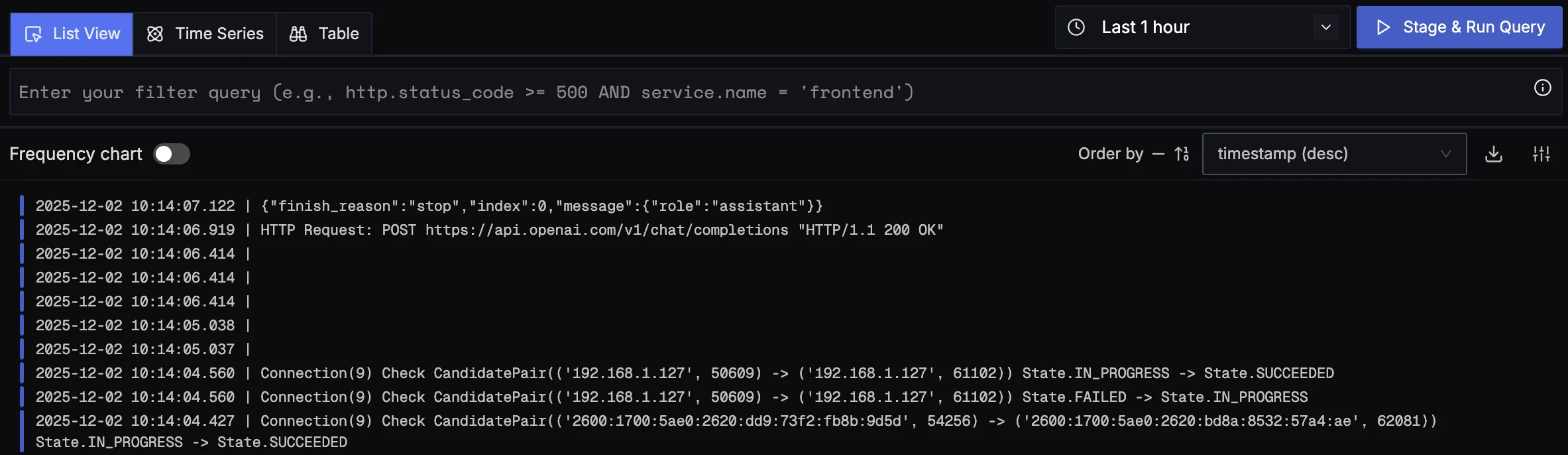 Your Pipecat voice agent usage should now automatically emit traces, logs, and metrics.
