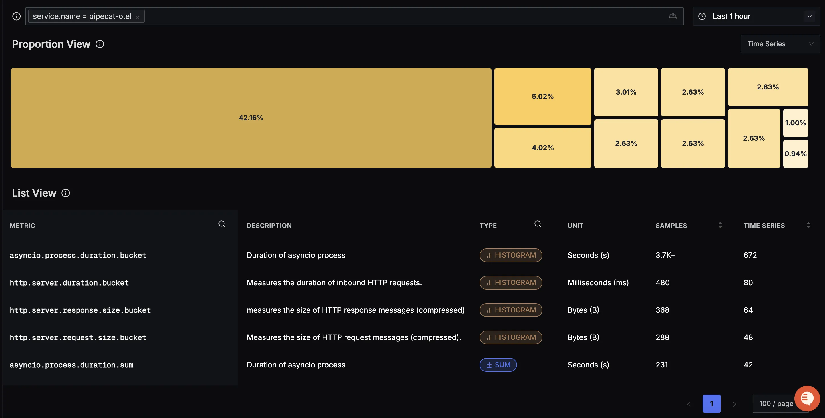 π Note: SystemMetricsInstrumentor provides system metrics (CPU, memory, etc.), and HTTPXClientInstrumentor provides outbound HTTP request metrics such as request duration. If you want to add custom metrics to your Pipecat application, see Python Custom Metrics.