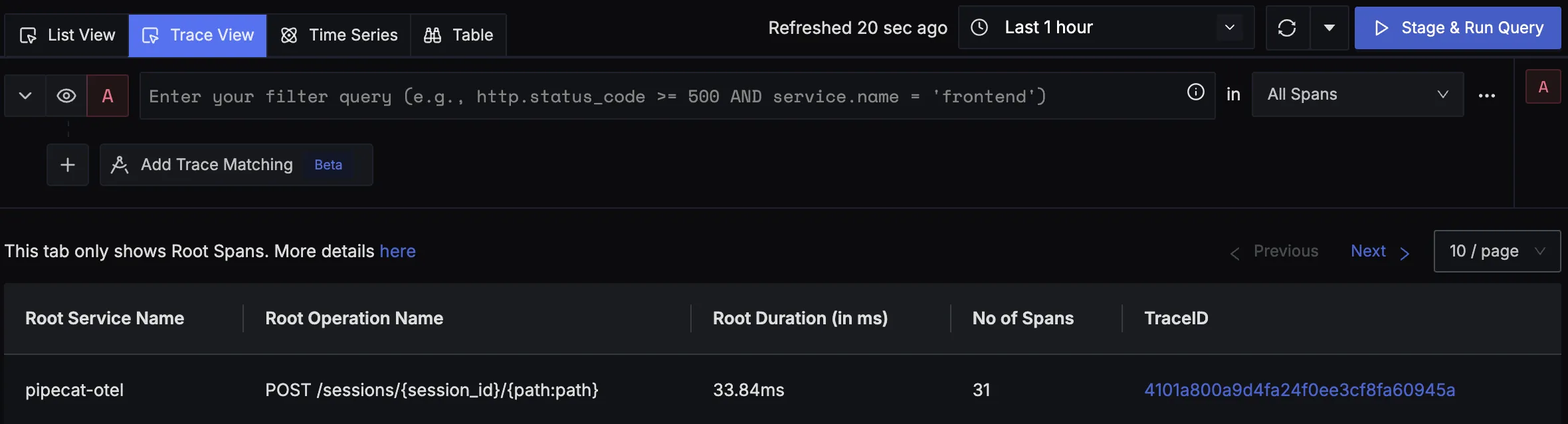 - Wait for data - OpenTelemetry batches data before sending, so wait 10-30 seconds after making API calls