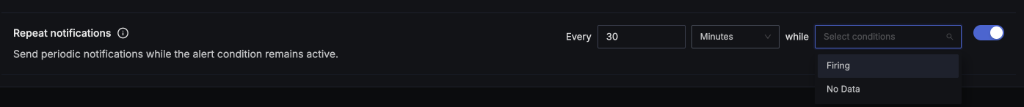 Configure repeat notifications to retrigger alerts at specified intervals if they remain unresolved. This feature allows you to receive follow-up notifications for ongoing issues.