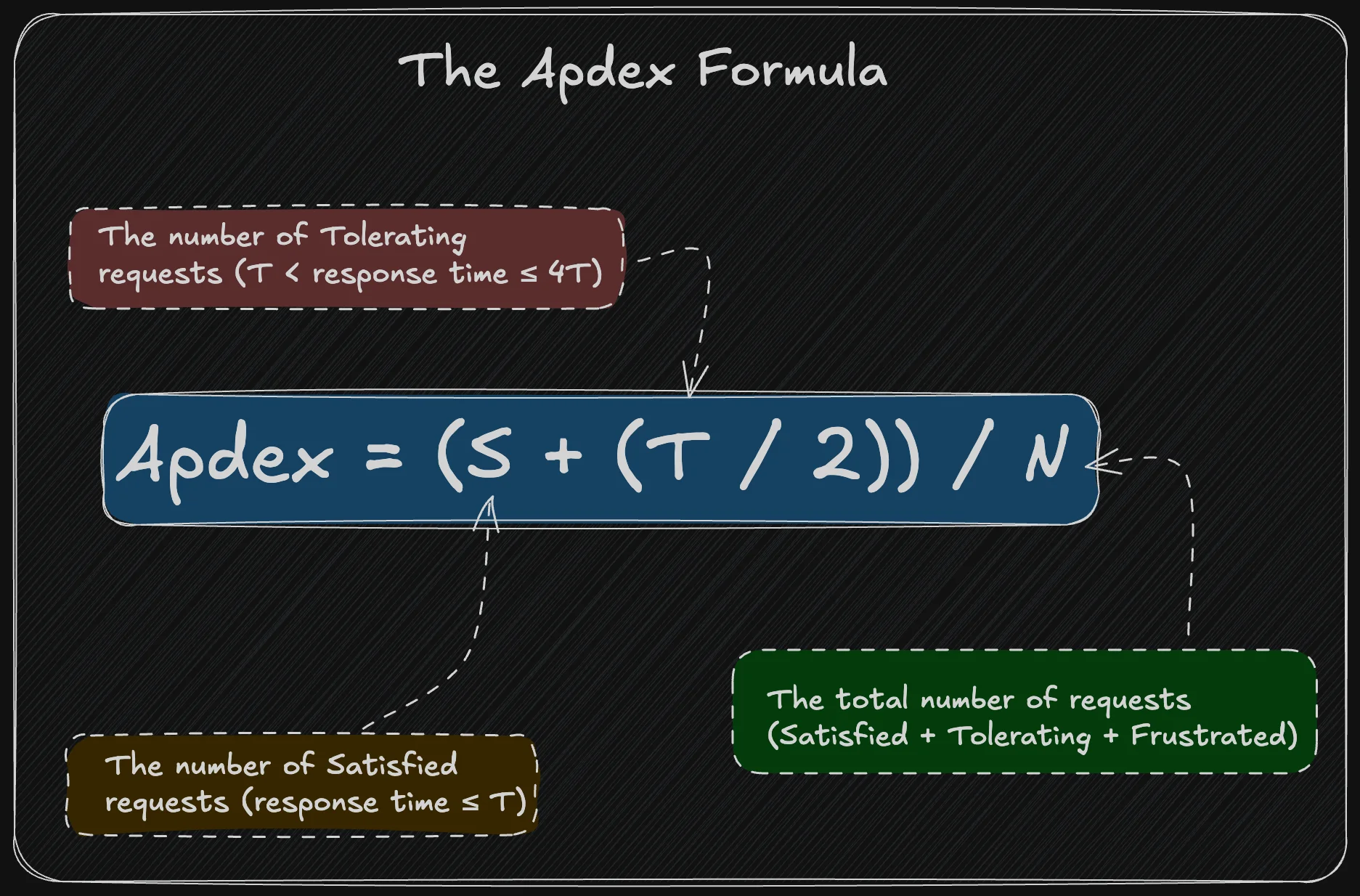 Non-Interactive Workloads: Apdex assumes a user is waiting. It is meaningless for async worker queues or batch jobs where "response time" doesn't directly map to human frustration.