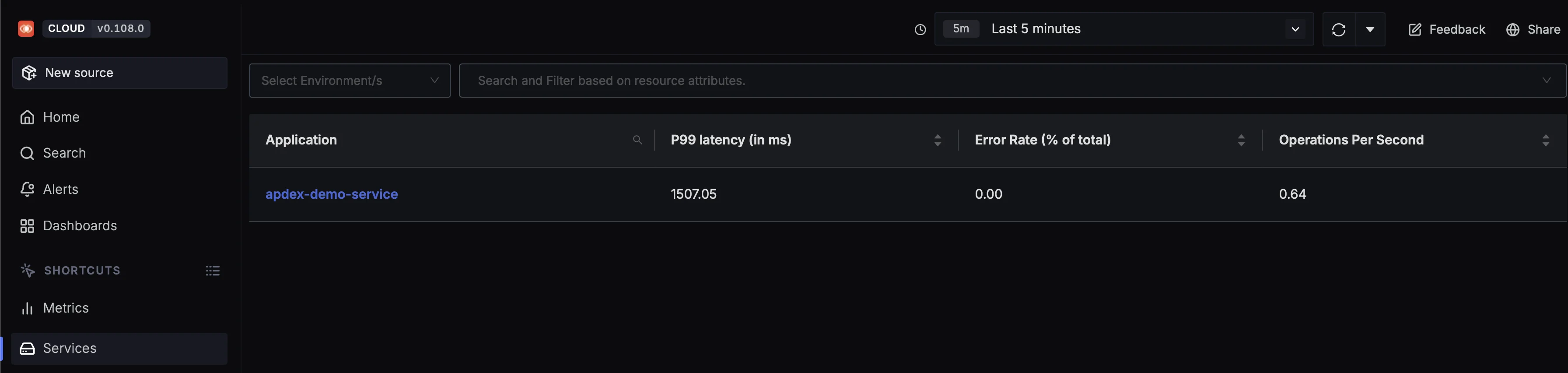 Before running the Apdex demo, you need a working observability backend that can receive OpenTelemetry data and derive latency-based metrics.