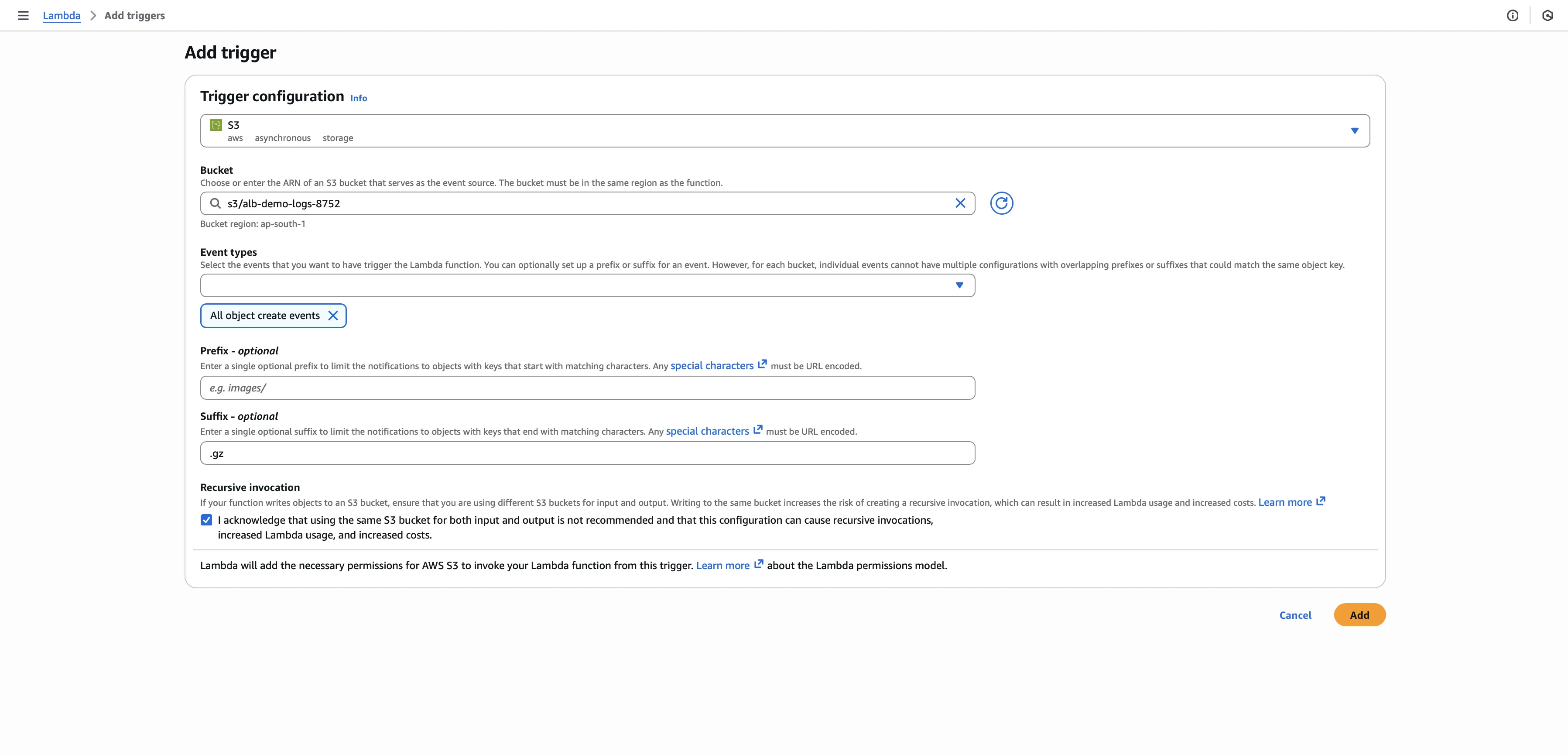 Go to the S3 console and create a dedicated bucket (e.g., alb-demo-logs-1234). Make sure to select the same region as your application load balancer. Leave the other settings at their defaults and click Create bucket.