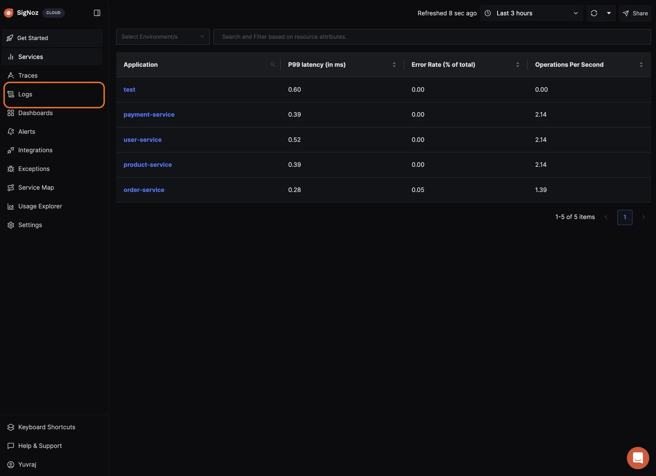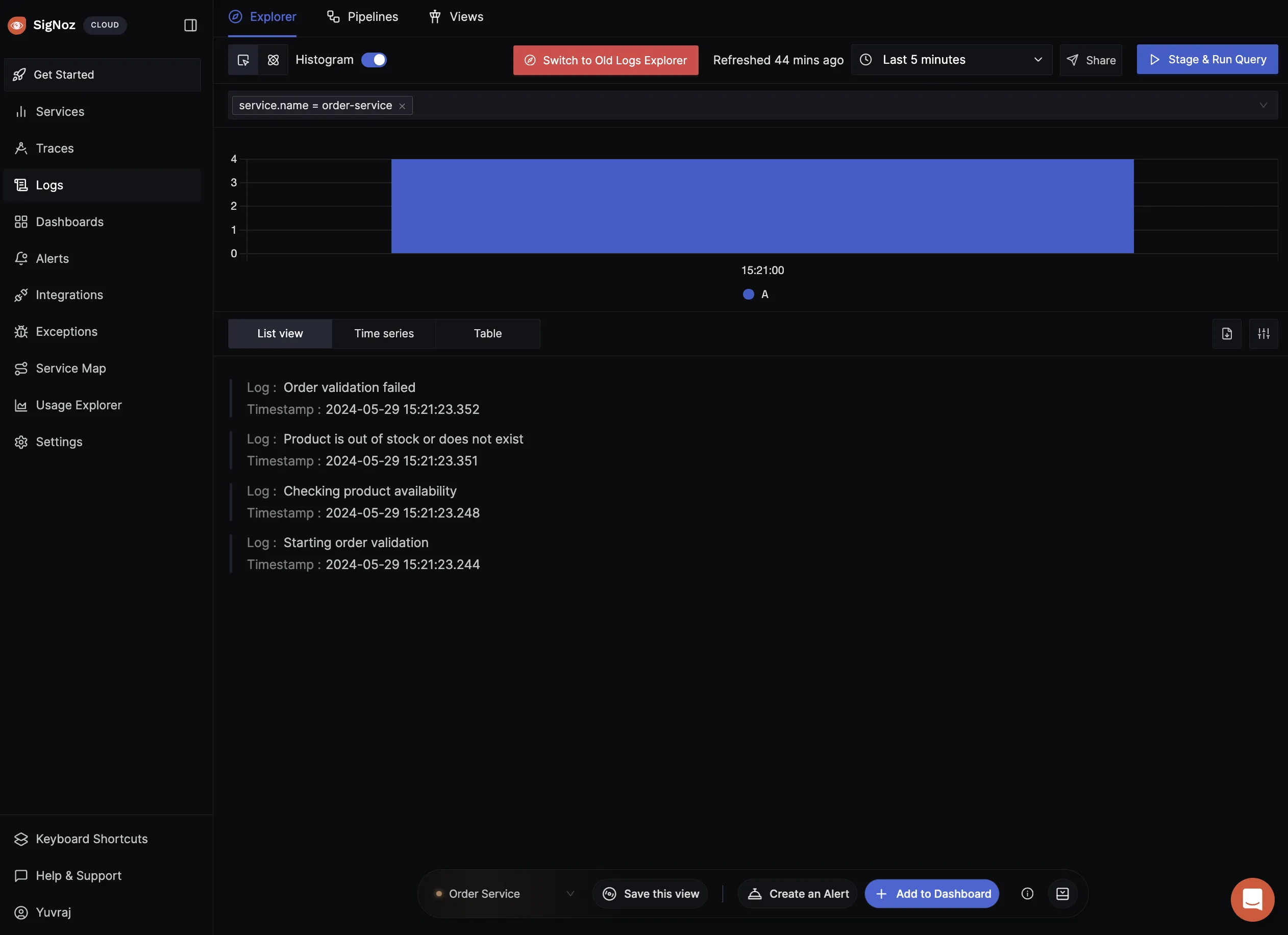 Viewing Logs in SigNoz