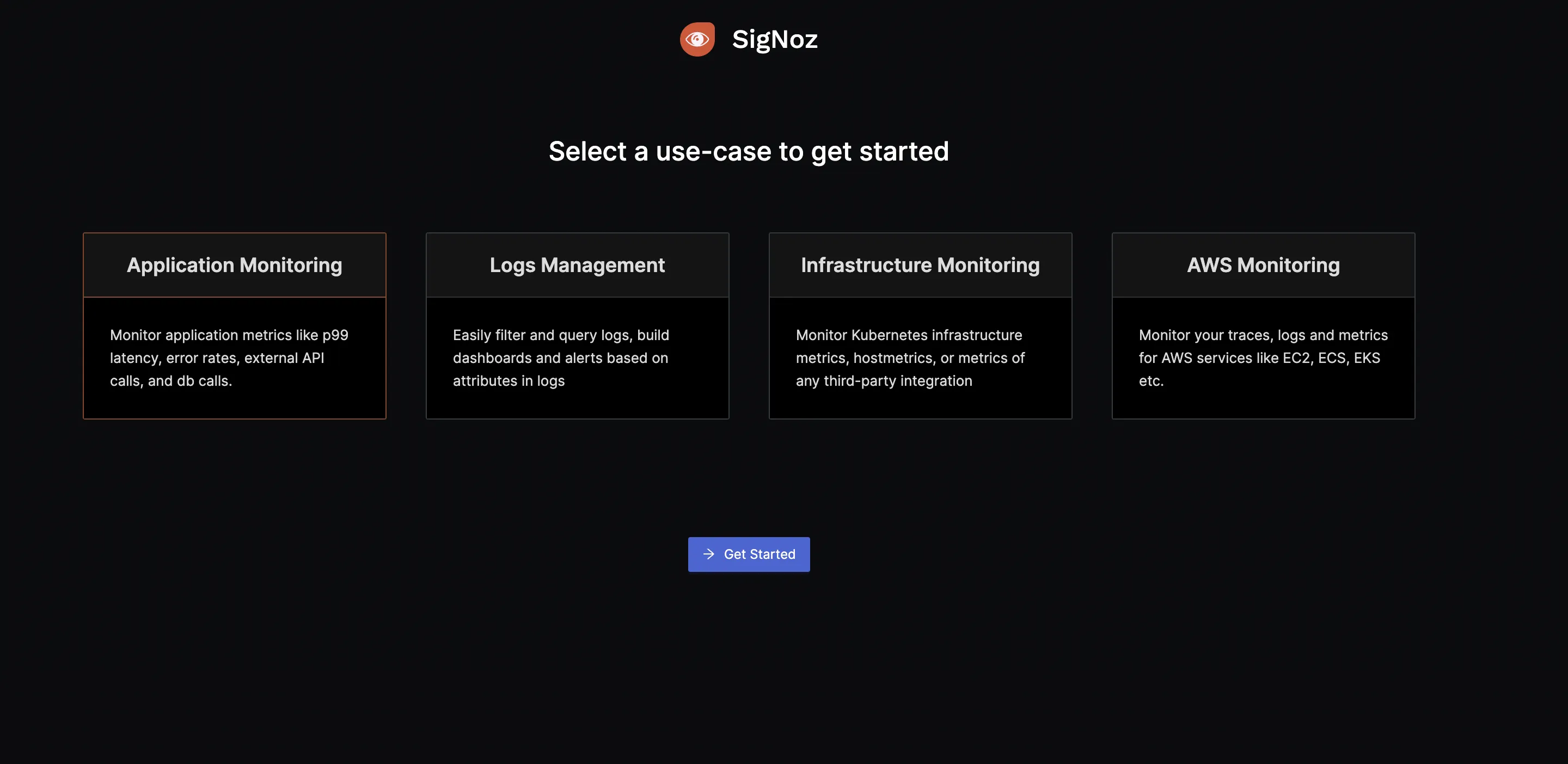 SigNoz cloud is the easiest way to run SigNoz. You can sign up here for a free account and get 30 days of unlimited access to all features.