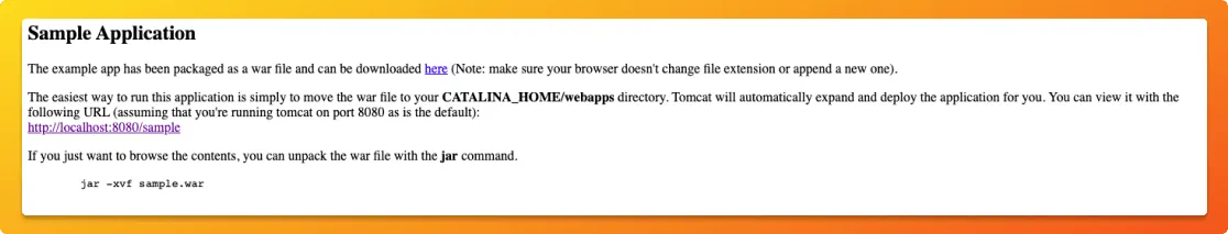 cd Tomcat/webapps cp ~/Downloads/sample.war . -