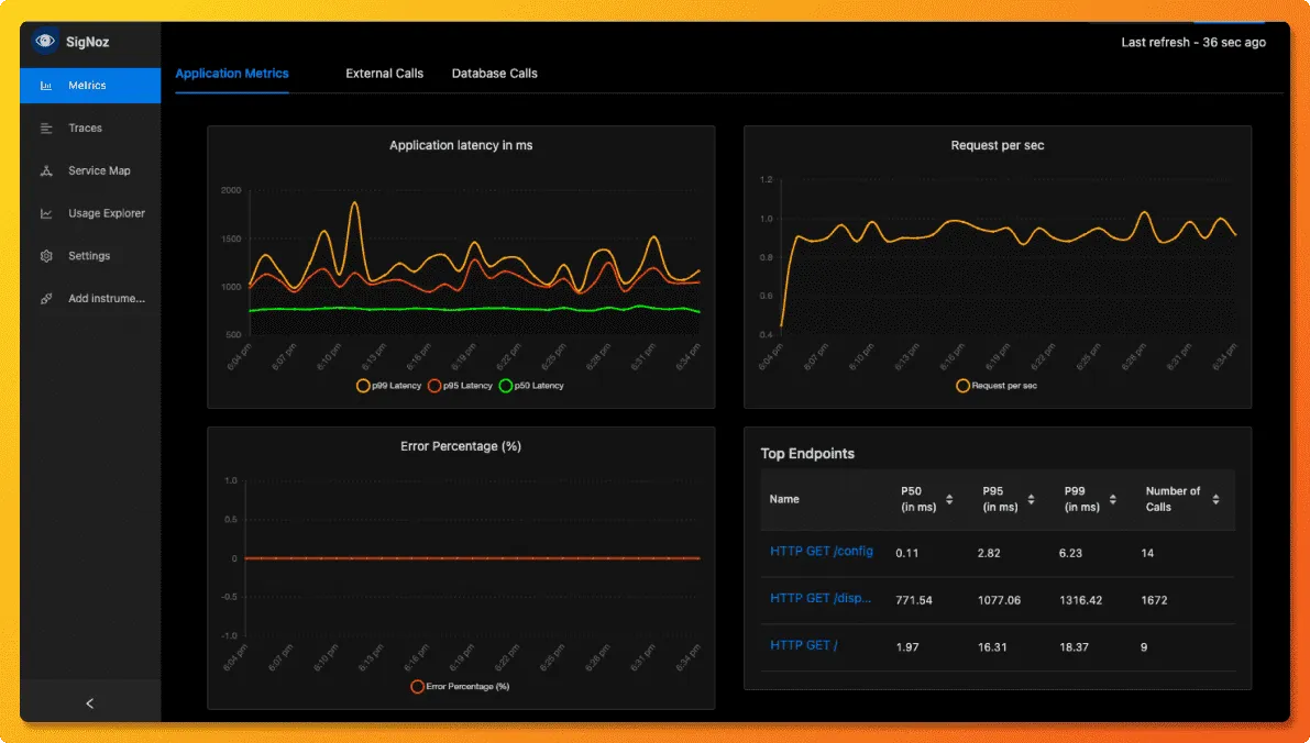 SigNoz makes it easy to visualize metrics and traces captured through OpenTelemetry instrumentation.